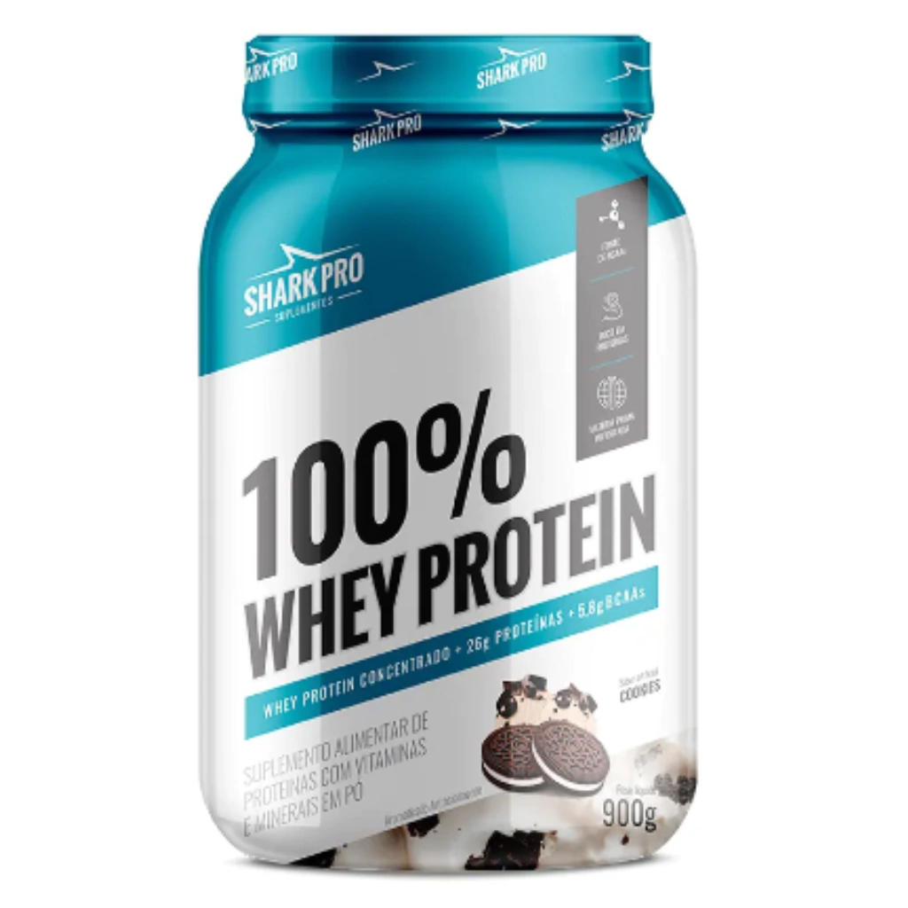 100% Whey Protein Shark Pro é um suplemento alimentar desenvolvido com proteína concentrada de soro do leite, enriquecido com vitaminas e minerais essenciais. É indicado para complementar o consumo diário de proteínas em dietas balanceadas.